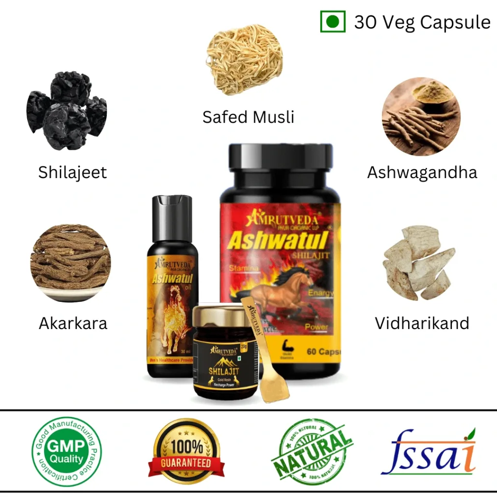 100% Ayurvedic and natural ingredients. Ashwagandha, kaucha,shilajeet,Safed Musli and more..